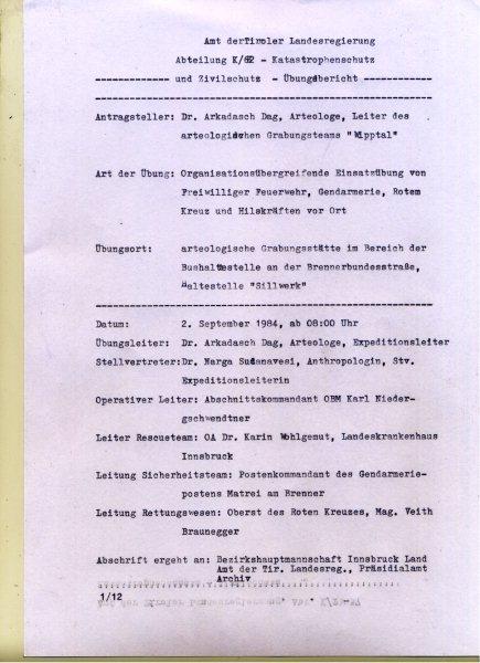 Wipptal, August – September 1984, Ausgrabungsprotokoll 9