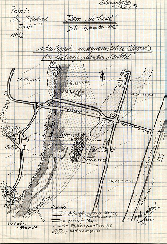 Mit dieser arteologischen Kartographie wurde bei der zuständigen Verwaltungsbehörde der Bezirkshauptmannschaft Reutte vorgesprochen, um dergestalt eine rasche Einzäunung des Geländes zu erreichen und mittels eines zeitlich auf die Sommermonate begrenzten Pachtvertrages im angrenzenden Wiesengelände das provisorische Lager der Expedition errichten zu können.